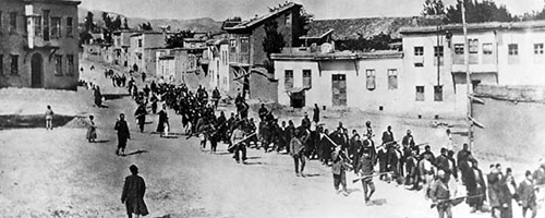 (下)1915年4月、オスマントルコ帝国。トルコ軍兵士に連行されるアルメニア人
