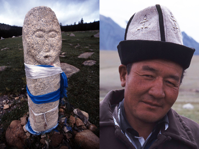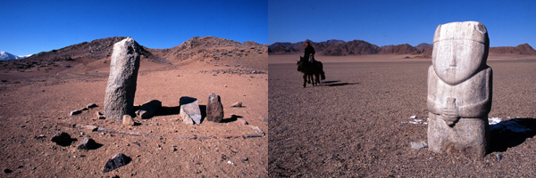 (下左)ユーラシアに点在する石塔。紀元前人類最初の騎馬遊牧国家スキタイ