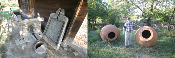 ここに収穫した葡萄を入れ、家族みんなで踏み、その果汁が地中の壷の穴の中