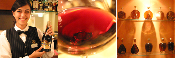 (上)イェレバンのホテルのバー、誇らしげにアルメニアコニャークを掲げる
