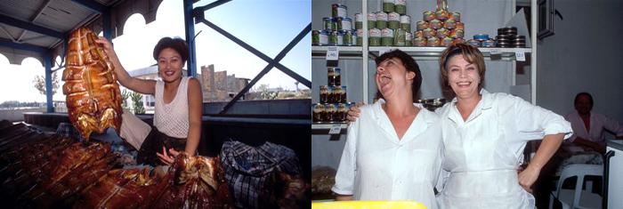 (上)強制移住による朝鮮族も4世にわたる。店にはロシア人も多い。問題は言葉でまさしく混在の会話だそうだ